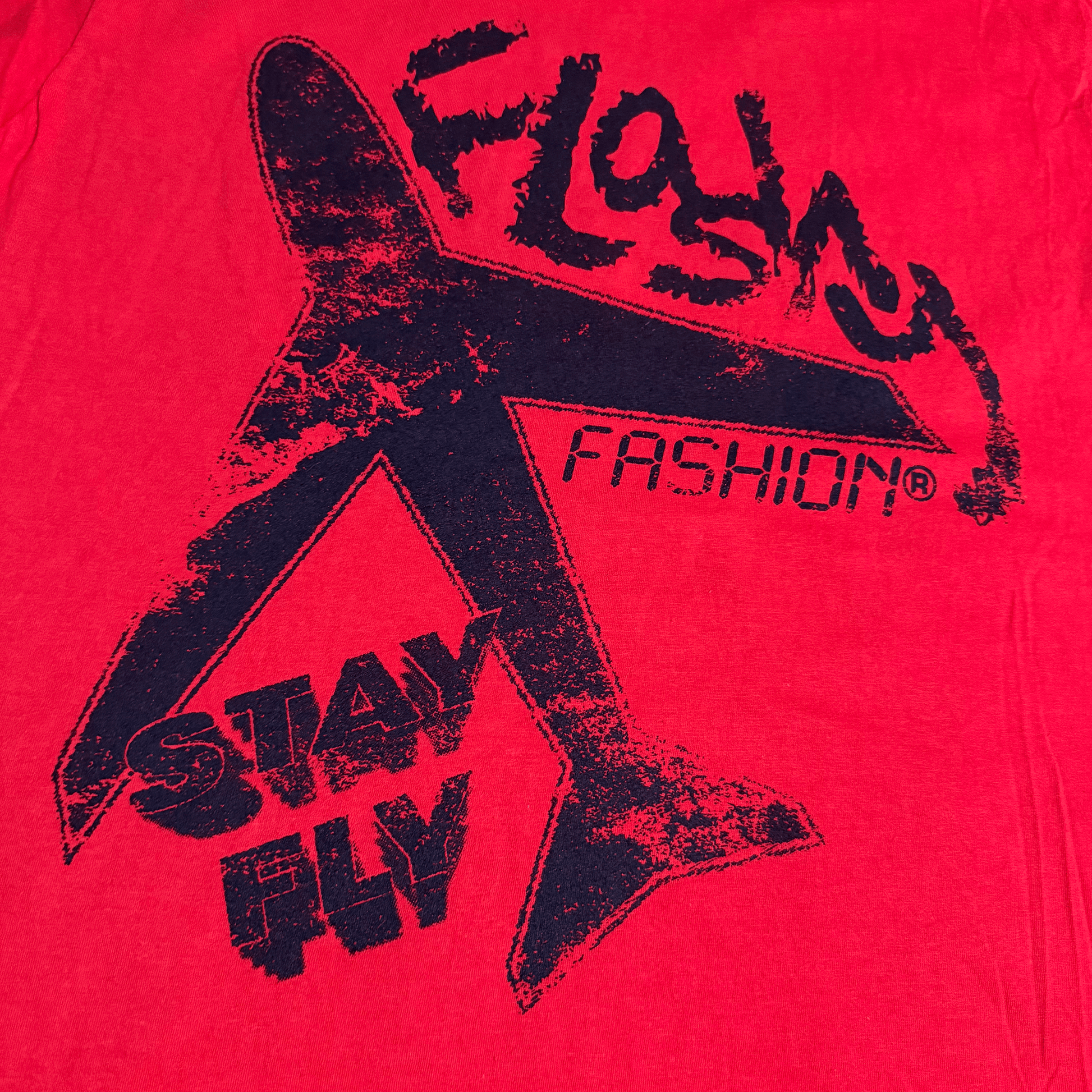 “Stay Fly” Flashy Bred Limited Edition T-Shirt features a paint process that was produced in-house. Each t-shirt features our Stay Fly screen printed design on front in black. The back features a Flashy Fashion silhouette spray painted with black. Tees are 4.2 oz. combed & ring-spun cotton.